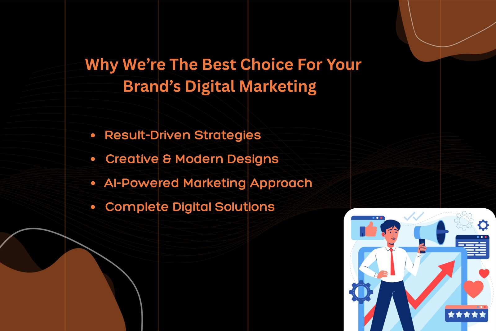 If you are looking for a team that delivers real results, builds strong brand presence, and helps you scale your business, then you are in the right place. Here’s why we are the best choice for your brand’s digital marketing.